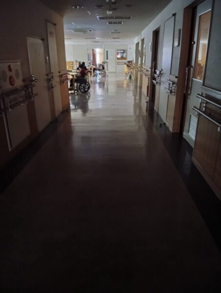 したと想定した訓練です。昼間でも廊下はとても暗くなりました。