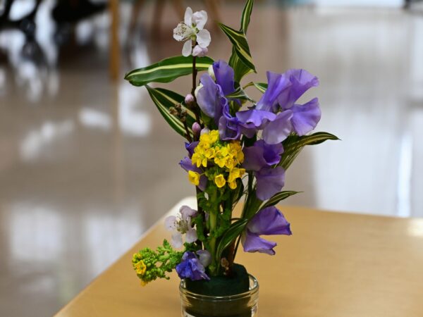 ケアハウスゲストのF様。毎回、とても上手に生けられます。