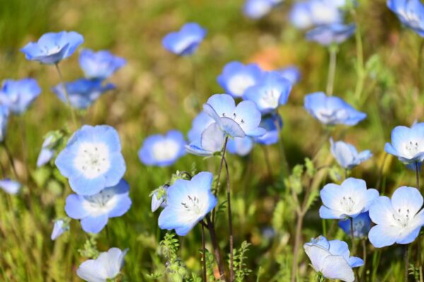 施設前の庭(?)に咲いた“ネモフィラ” ネモフィラは英名【Baby blue eyes(赤ちゃんの青い瞳)】って言うんだそうです。素敵ですね。